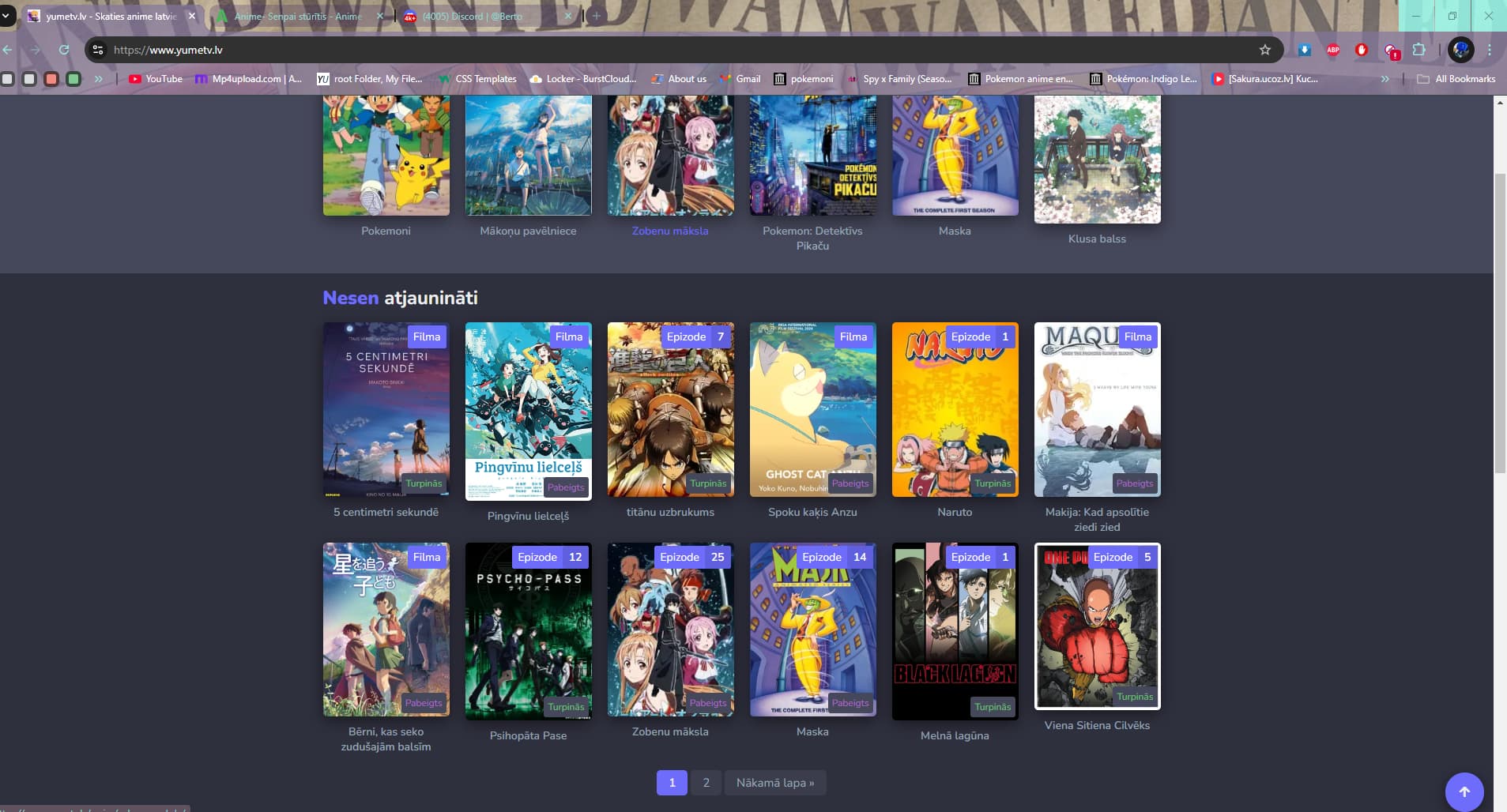 Es tagad mājas lapai veicu uzlabojumus lieku, arī dub un sub kategorijas un likšu vēl auto skip auto play un auto next ![]()