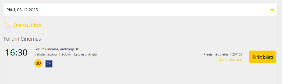 Kino no 5. decembra - seansi un laiki pašlaik nav zināmi, bet tas netraucē atzīmēt sev kalendārā.