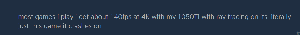 Bet atmetot jokus pie malas, 1050ti patiesībā pavelk šo gabalu (uz 1080p obv.) un ironija slēpjas lietotāja melos pašam sev.