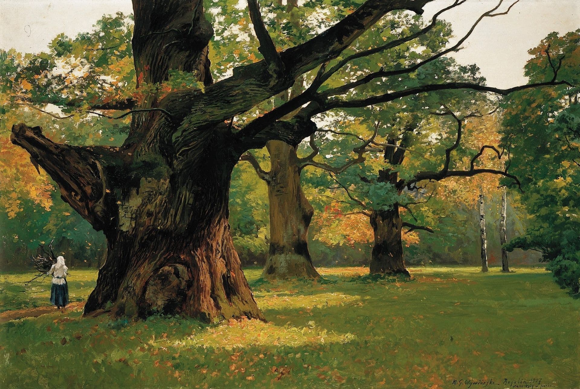 Michał Gorstkin-Wywiórski - Old oaks in a park in Rogalin (oil on canvas, 81 x 121 cm), 1907, Palace Museum in Rogalin.