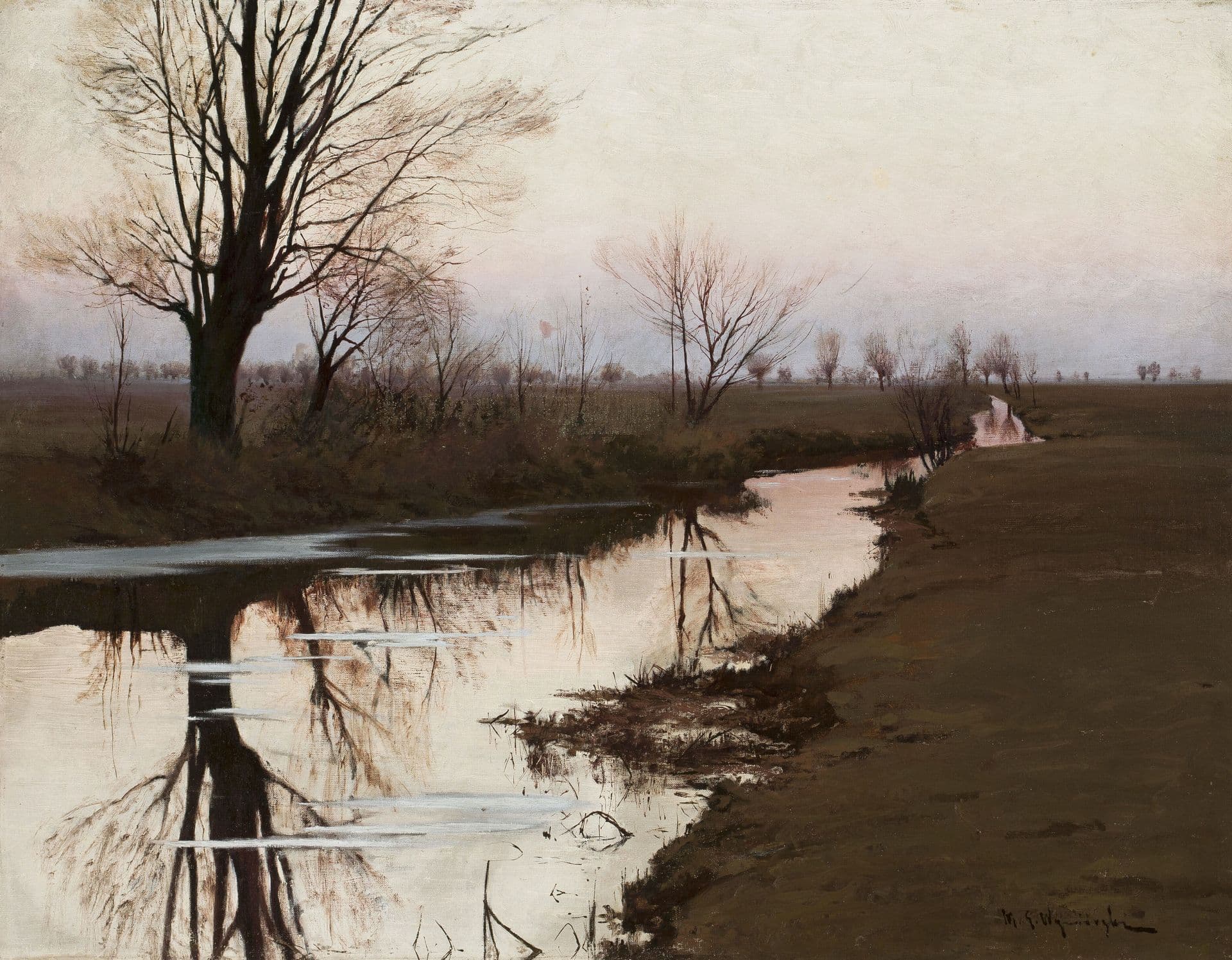 Michał Gorstkin-Wywiórski - Autumn landscape with a river (oil on canvas, 69 x 87 cm), after 1900, National Museum in Warsaw.