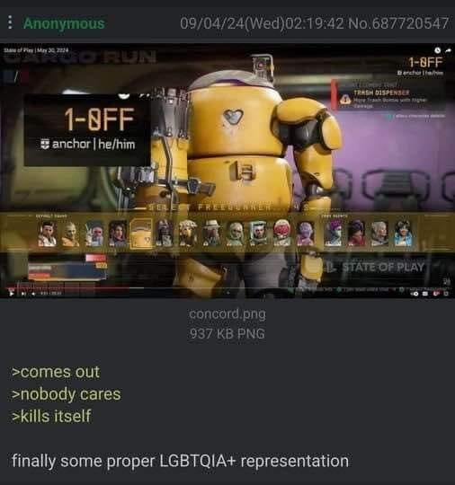 Concord tēlu dizains bij tāds feils. Veidotāji gribeja būt tik iekļaujoši un pretoties stereotipiem, ka pēc to dizaina par tēlu nevar saprast absolūti neko. Nedz klasi, nedz spējas, nedz tematisko iedvesmu, nedz dzimumu, nedz vecumu( izņemot to veco tanti).