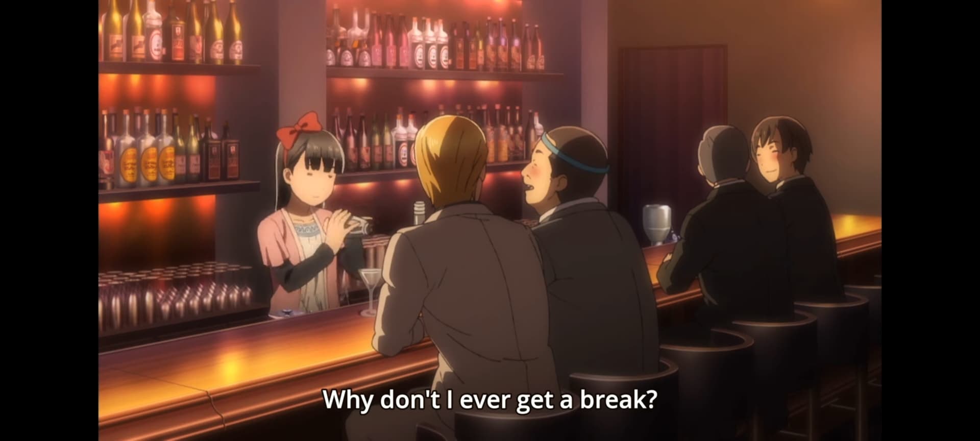 Nop. Bārmene ir side character kuras prikols ir tāds ka viņa nespēj pateikt nē un ir ļoti laba strādniece jebkurā darbā kur viņu pieņem.
