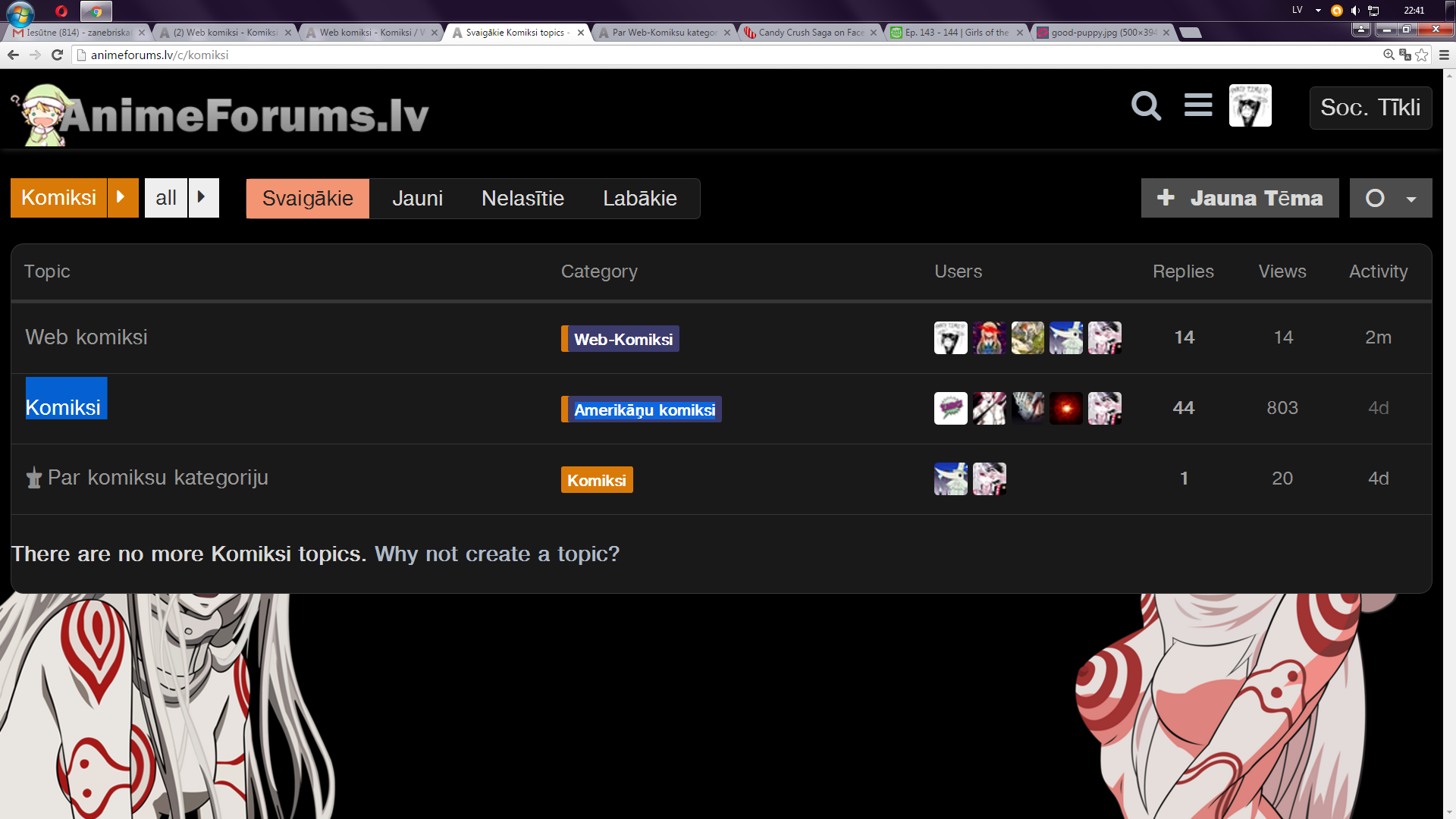 Tad jau tāpat kā animēm un (lkm) mangām, ja vēlēsies kādu izcelt, varēsi izveidot tēmu, kas būs veltīta konkrētajam izdevumam